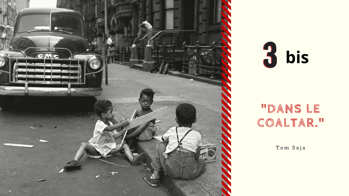 Pour notre concours de décembre 2020, nous vous avons demandé de vous inspirer d’une photo de Vivian Maier. Le troisième prix est attribué ex-aequo : Tom Saja pour « Dans le coaltar » (poésie) et Neïla Khelifi pour « L’air était chaud. » (fiction). Ici, le texte de Tom Saja.