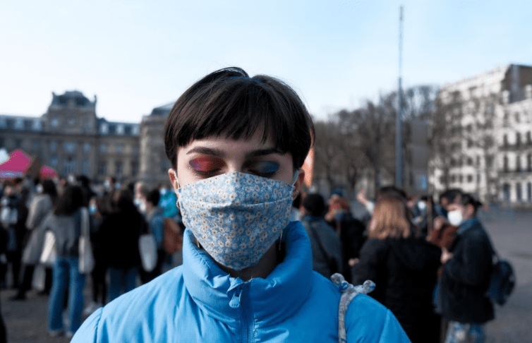 Derrière ses lunettes noires et ce masque de meltblown, se cache Antoine, un éditeur originaire du Sud Ouest, qui a quitté sa terre natale pour Lille il y a peu. Une main pour la taille, une autre pour sa bière. Antoine prend la pause. Un sourire se dessine sur son visage. Antoine est fier. Le combat pour les droits des femmes est un événement qui lui tient particulièrement à coeur. Accompagné de ses copines, il est venu faire un peu de présence masculine. « On se rend bien compte aujourd’hui qu’il n’y a rien du tout de réglé. Il y a certes de belles et de nouvelles dynamiques qui sont en place pour libérer la parole, mais il faut résoudre des problèmes qui sont systémiques et qu’on connaît tous », appuie le jeune homme.