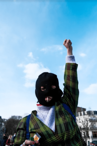 Malgré sa cagoule, qui laisse à peine entrevoir ses yeux habillés de noir et sa cigarette qui se consume à mesure que nous échangeons, une déception se lit sur son visage. Si elle admire le fait que l’on puisse « sensibiliser » et « rendre compte » aux hommes que la société n’est pas égalitaire, elle se désole que seule la date du 8 mars ne soit consacrée aux femmes.