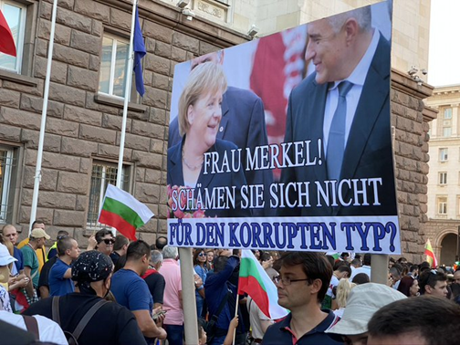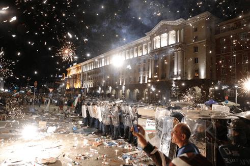 Le second événement qui provoquera le soulèvement populaire se déroule le 9 juillet au matin, lorsque les bureaux des conseillers du président sont perquisitionnés pour soupçon de trafic d’influence sur ordre du procureur général Ivan Geshev. Ce dernier avait saisi quelques mois auparavant la Cour constitutionnelle pour déterminer dans quelle mesure il était possible d’inculper un président en exercice et le destituer. Ces perquisitions, menées par un procureur général qui était le seul nominé et fortement lié à la nomenklatura bulgare ne sont plus à prouver, ont été interprétées par de nombreux Bulgares comme une attaque contre la démocratie. Des milliers de personnes descendent dans les rues de toutes les grandes villes pour exiger la démission immédiate de Borisov et Geshev. Le pays plonge alors dans une crise politique sans précédent dans l’histoire bulgare et Borisov propose sa démission le 14 août en échange de la convocation d’une « Grande Assemblée nationale » chargée de rédiger une nouvelle Constitution, ainsi que la réduction du nombre de parlementaires, des pouvoirs du Premier ministre, du ministre de la Justice et du parquet[19]. Cette tentative est vaine et la proposition se voit rejetée par le président de la République, les manifestants et l’opposition parlementaire car elle favoriserait le statu quo en matière judiciaire.