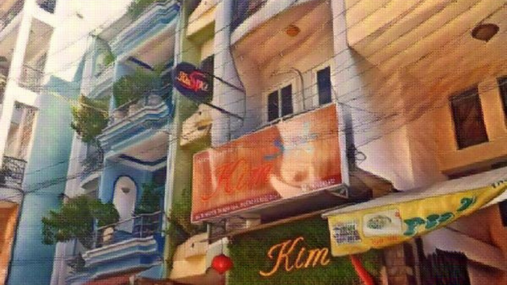 Tan An. Jeanne a pris son téléphone et a cherché sa ville sur Google Maps. Sur l’écran, j’ai vu des routes qui perforent des enfilades de bâtiments en béton. Des échoppes flanquées d’enseignes Honda, Omo ou Fanta, devant lesquelles passent de minuscules scooters, et des arbres d’un vert monochrome, foncé, dans les branches desquels s’emmêlent les câbles électriques reliant les paraboles aux poteaux qui peuplent les rues. Il y a des petites chaises en plastique rouge, très basses, sur lesquelles sont assis des hommes et des femmes aux jambes repliées, les pieds glissés dans des tongs posées sur les pavés dévorés par la mousse. Des drapeaux rouges qui paraissent faire concurrence aux feux tricolores près desquels s’agglutinent un nombre déconcertant de deux-roues dont s’échappent une petite fumée grise comme un souffle qui colore les murs. La lumière est toujours blanche, basse, presque de la même couleur que le sol, et les habitants, invariablement, en manches courtes. Est-ce la même Tan An que celle de son enfance ?