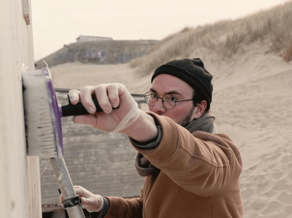 J : À chaque fois ce sont les peintures originales qu’on a posées avec un cadre. Le cadre était une façon de dire « vous êtes face à une œuvre », à une peinture. Si tu veux espérer que les gens se posent la question de ce que tu as voulu dire, il faut que tu donnes à la personne en face de toi autre chose qu’une réplique ou une affiche. Poser l’original, c’était la base. Ensuite, les endroits où on les a posées étaient réfléchis soit à travers la réalité soit à travers la fiction. Par exemple, Emmanuel Macron on l’a posé à Amiens parce que c’est là d’où il vient. Et en même temps, il y a aussi une raison fictionnelle à ce qu’il soit à Amiens : Macron, dans la réalité, il a raté deux fois le concours d’entrée de l’ENS et a ensuite obtenu Sciences Po. Dans la fiction, après avoir raté deux fois l’ENS, ses parents lui disent de rentrer à Amiens parce qu’ils ne veulent pas payer une année de plus. Il rentre, il s’engueule avec ses parents, ça se passe mal. Il s’évade avec le théâtre, qui est son premier amour de jeunesse. À force de fréquenter des islamo-gauchistes dans le théâtre, il rencontre François Ruffin. Ensemble ils décident de monter un journal qui s’appelle Fakir. Jusqu’à ce qu’il devienne Gilet Jaune, monte à Paris pour manifester, se prenne un LBD et se présente aux élections présidentielles en tant que candidat Gilet Jaune avec le parti Bleu Blanc Jaune. Donc, le poser à Amiens ça fait sens autant d’un point de vue de la réalité que de la fiction qu’on a écrit. François Hollande, il a été maire de Tulles, conseiller régional de la Corrèze. Tulles c’est aussi la capitale de la Corrèze : donc on l’a posé à Tulles. C’est pareil pour Nicolas Sarkozy, avec ces deux fameuses phrases dites en 2015 : « Vous en avez assez? Vous en avez assez de cette bande de racailles? Et bien on va vous en débarrasser » et « Nettoyer au Kärcher est un terme qui s’impose car il faut nettoyer cela ». Ces phrases ont été dites à la Courneuve et à Argenteuil donc on a choisi de le poser à l’entrée de la Courneuve. Valérie Pécresse, on l’a posée dans le Marais parce que c’est le quartier LGBT+ de Paris et parce qu’elle est conseillère régionale d’Ile-de-France. Marine Le Pen, on l’a posée sur la plage à Calais par rapport à la fiction : on s’est dit que si elle était avocate et qu’elle défendait les migrants, certainement elle irait à Calais.