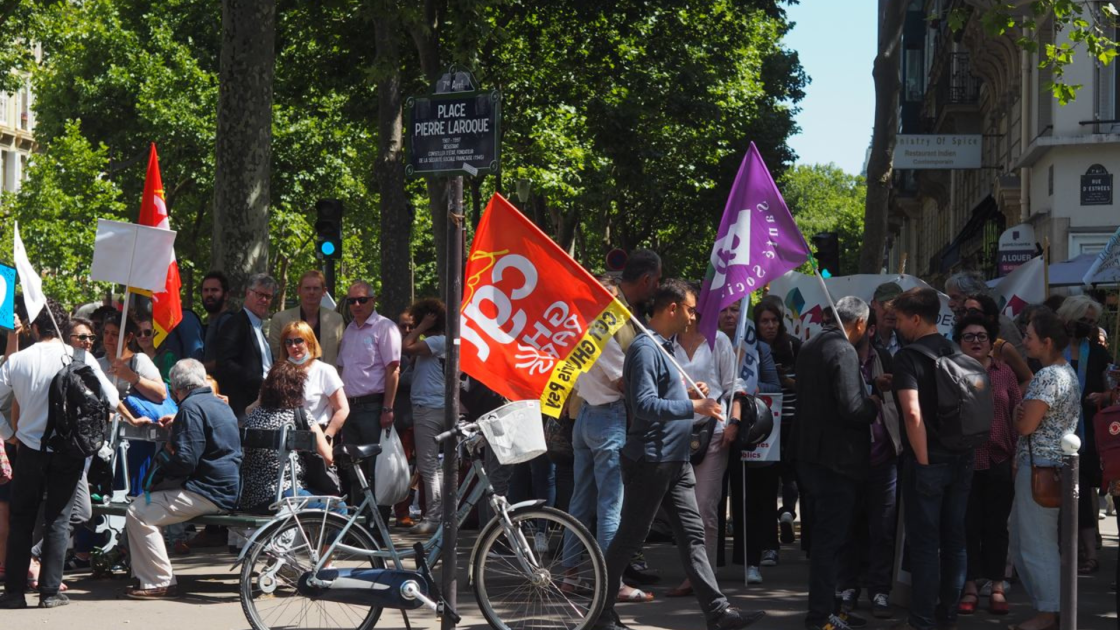 Aux premières heures de l’après-midi, une semaine après l’équinoxe d’été, une petite foule se masse aux abords d’un imposant bâtiment à la façade vitrée, à quelques encablures du Champ-de-Mars et des Invalides. Ce 28 juin, les quatre syndicats de la psychiatrie publique (USP, IDEPP, SPH et SPEP)[1] se rassemblent devant le ministère chargé de la santé afin de ponctuer une journée d’action et de grève. « Jamais dans son histoire, depuis la libération (sic), la psychiatrie n’a connu un tel danger : l’effondrement est proche », alertaient-ils le 10 juin dans un communiqué de presse pour appeler à la mobilisation de ce jour. Leur mot d’ordre : la nécessité d’un soutien massif à leur discipline.