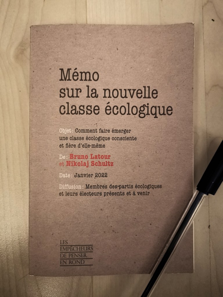 Ce que nous disons, c’est que la classe écologique allonge l’horizon de l’histoire et lui donne un autre sens en reprenant les questions de cosmologie, et en faisant avancer le projet civilisateur en élargissant ses sensibilités aux conditions planétaires d’habitabilité. Ce faisant, cette classe aspire à définir un autre sens du progrès, à inspirer et à entraîner les autres classes par leurs horizons et leurs modes de vie. C’est notre façon de dire que la classe écologique ne doit pas être embarrassée ou humble. Au contraire, elle est une nouvelle classe-pivot, plus rationnelle que les autres, plus civilisée même, exactement parce que les autres classes ont trahi leur propre projet de civilisation en nous conduisant vers « les ruines du progrès ».